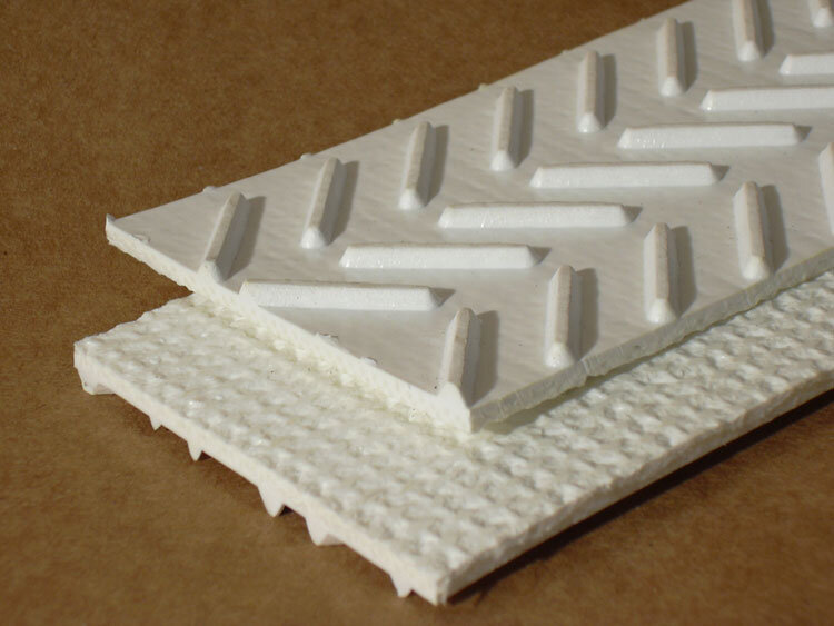 Specs: 1 Ply, White, 0.23″ Thk (Recessed 0.14″), PVC Compound Belt, Interwoven Polyester Reinforcement, Work Tension 120 lbs PIW, Rec Temp Range 0F to 180F.